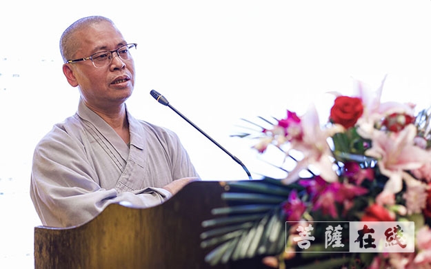 南京大学中华文化研究院教授、香港宝莲禅寺方丈净因法师致辞(图片来源:菩萨在线 摄影:卢鹏宇)