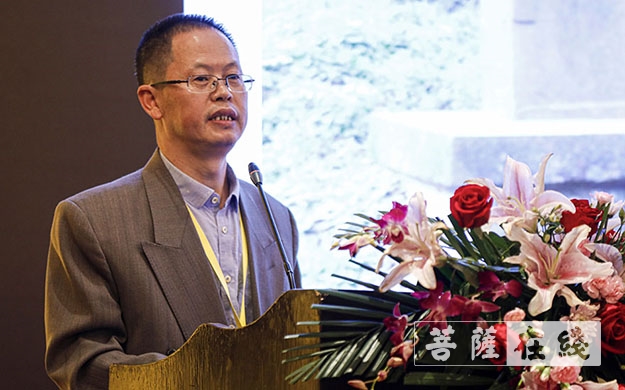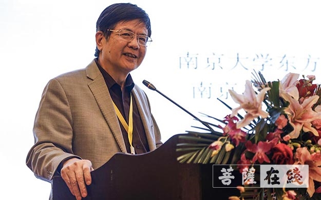 南京大学东方哲学与宗教文化研究中心主任洪修平致辞并作主旨讲演(来源:菩萨在线 摄影:卢鹏宇)