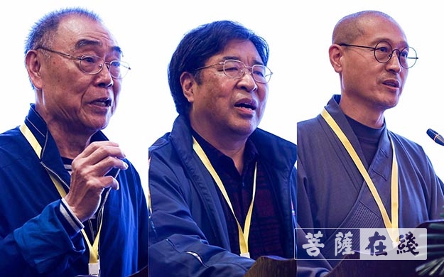麻天祥、班班多杰、慧观法师分别发表主题讲话(来源:菩萨在线 摄影:卢鹏宇)